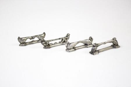 3186. Suite de quatre porte-couteaux Art Déco figurant des singes, cyg...