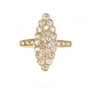 4320. Bague marquise pavée de diamants taille ancienne (env. 1,5 ct)