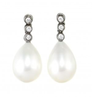 4324. Boucles d'oreilles retenant une perle en goutte (D env. 9 mm) re...