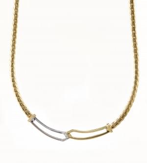 4339. Collier à maille plate retenant un motif ajouré stylisé deux ors...
