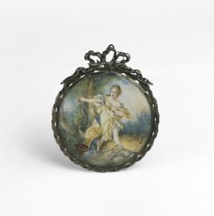 Miniature ronde sur ivoirine signée Baudoin, 7x7 cm