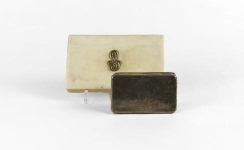 Ivoire et or, L 14 cm. On joint une tabatière en métal argenté,...