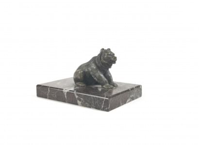 4389. Encrier à décor d'enfant au chien et figurine de bergère