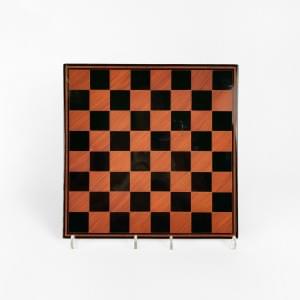 Bois sculpté et patiné, bois laqué noir et rouge, H roi 8,5 cm