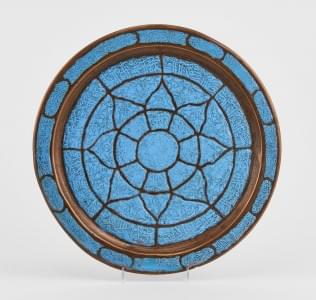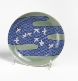 Porcelaine émaillée bleu et vert à décor d'oiseaux, D 19 cm