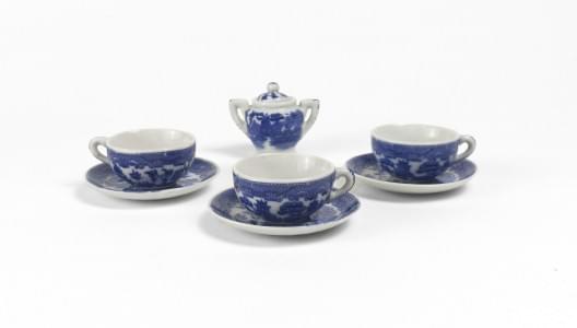 Porcelaine, comprenant: trois tasses et un sucrier, H de 3 à 5 c...