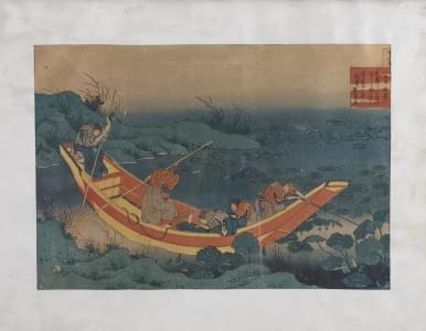 4986. Embarcation aux personnages et rameurs, Inde, fin XIXe s