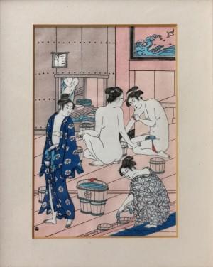 Porcelaine émaillée polychrome à décor de geishas, D 13 cm