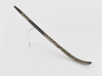 Ivoire sculpté, laque et nacre, L 18 é 34,5 cm
