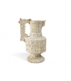 Faïence émaillée blanche à décor de calligraphie, H 25 cm