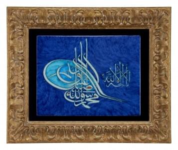 Céramique émaillée brun et bleu à décor de calligraphies et rinc...