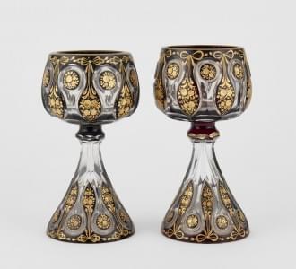 Verre rubis à décor émaillé et doré, H 11 et 15 cm