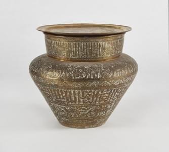 Cuivre à décor au repoussé de frises d'animaux et calligraphies,...