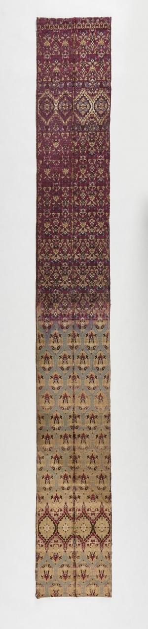 Lampas lin et soie, motifs arabo-andalous sur fond satin vert ou...
