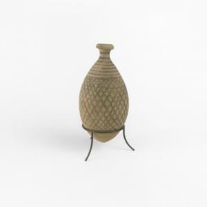 Terre cuite à l'engobe de croisillons, H 19 cm.
