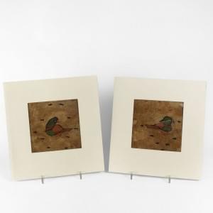 A motif de deux oiseaux, 16,5x17 et 16x16 cm
