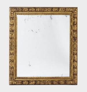 Bois stuqué et doré, à motif ciselé de feuillage, glace au mercu...