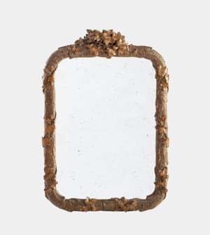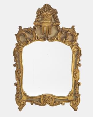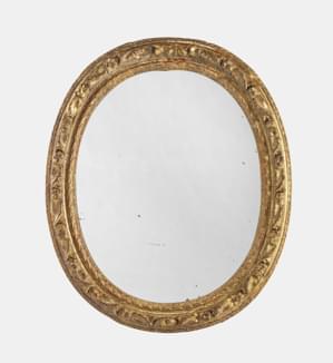 Bois sculpté doré, à motif de fleurs et rameaux, glace au mercur...