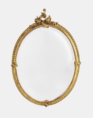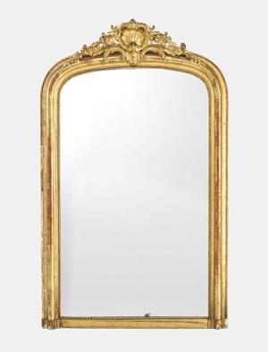 Bois sculpté doré, à motif de frise de perles, glace au mercure,...