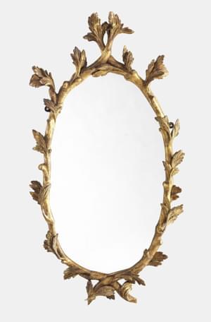 Bois sculpté doré, laqué vert, à motif de feuilles, glace modern...