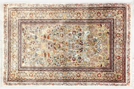 Laine et soie à motifs de fleurs sur fond beige, bordure à décor...