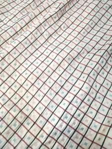 4469. Paire de rideaux à décor de carreaux bleu et rose