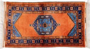 Laine et soie à motifs géométriques sur fond orange,, 59x107 cm