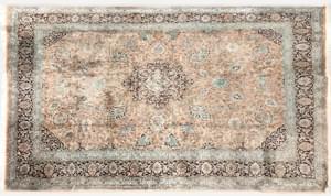 Laine et soie à motifs de rinceaux et oiseaux, bordure à décor d...