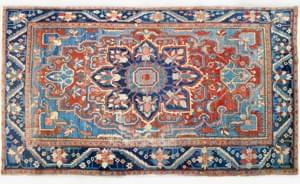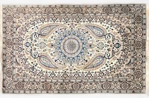 Laine à motif central quadrilobé bleu et de palmes sur fond crèm...