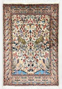 Laine et soie à décor d'animaux au bord d'une marre, 167x125 cm