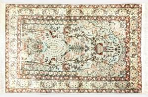 Laine et soie à motifs circulaire flanqué de quatre boteh, signé...