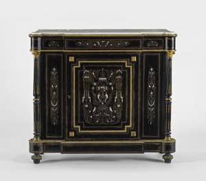 Bois noirci, bronzes dorés et marbre blanc, 110x122x41 cm