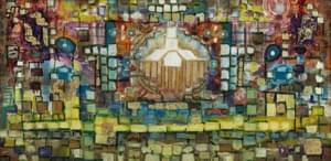 Trois divinités sous un dais, pigments sur toile, 73x50 cm