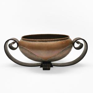 Jardinière, fer forgé et cuivre martelé, signée, L 50 cm