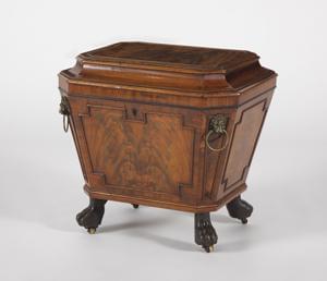Base moulurée et acajou moucheté, 56x77x47 cm