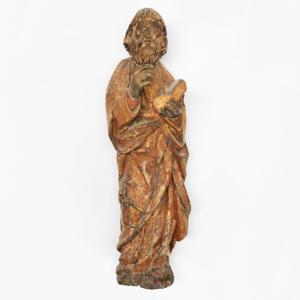 Bois sculpté et peint polychrome, traces de dorure, H 42 cm