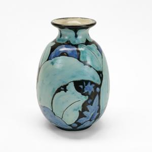 Céramique à motifs floraux émaillés bleu, H 20 cm
