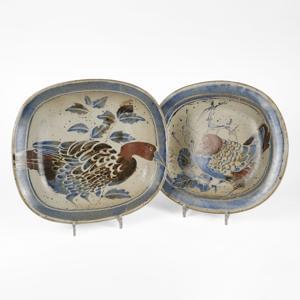 Deux plats à décor d'oiseaux, 33x30 cm