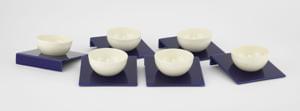 Suite de six tasses bol sur coupelle carrée oblique, céramique é...