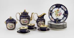 4557. Service à thé bleu roi à décor de fleurs en réserve, Paris