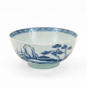 Porcelaine émaillée bleu blanc à décor de rochers, D 19 cm