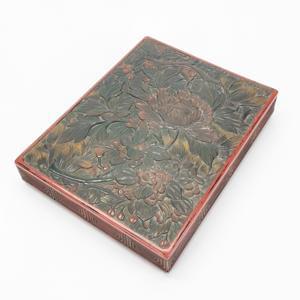 Bois et laque rouge et polychrome à décor en léger relief de fle...