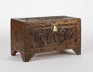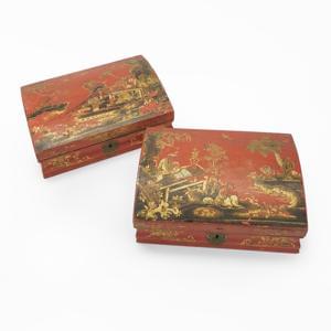 Bois laqué à décor de paysages animés, 30x10x24 cm