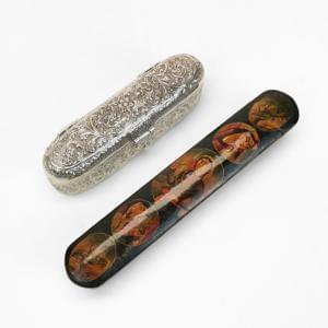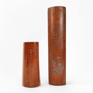 Bambou à décor de caractères et fleurs, L 15 cm et L 27 cm