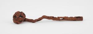 Bois sculpté teinté rouge, H 49 et 26 cm