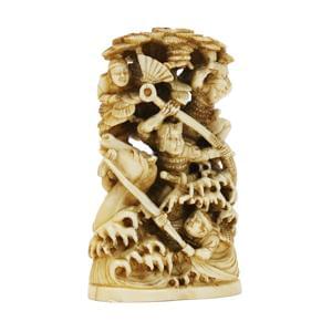 4766. Okimono figurant une bataille sous un arbre, Japon, début XXe