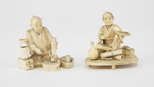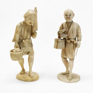 4772. Deux okimonos marchands ambulants, Japon, époque Meiji (1898-191...