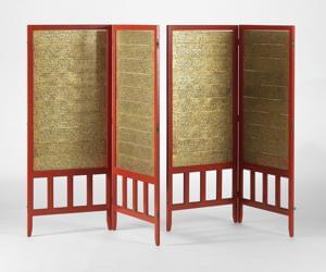 40 pages en pali montées dans un encadrement en bois laqué rouge...