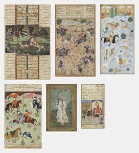 4798. Collection de six miniatures persannes, dynastie Qajar et postér...