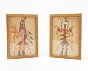Paire de personnages anthropomorphes, turquoise, sable et pigmen...